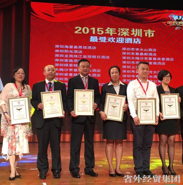 深圳长安大酒店荣膺“2015年深圳市最受欢迎酒店”荣誉称号