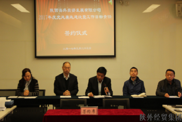 2017年3月23日,陕西海外投资发展有限公司组织召开了2017年度工作目标责任暨党风廉政建设目标责任签约大会,陕海投全体职工参加了会议。