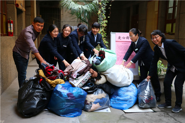 北方的天气日渐变冷,许多孤寡老人家庭困难,无力置办冬衣,总办党支部了解到这个情况以后,便参加了由火锅联盟发起组织,陕西众泰慈善基金会协助的“2018商洛山区暖冬行动”公益活动。总办党支部对此次活动高度重视,认真筹划,积极准备,在总办党支部办公室设点开展募捐活动。倡议书下发后,支部成员积极响应、热情参与,纷纷送来自己的羽绒服、棉衣、棉裤、围巾、帽子等御寒衣物。在此次活动中,其他支部及干部职工也积极踊跃进行捐赠,以实际行动献出爱心,捐赠的衣物共计200余件。一件件衣物送出一份份温暖,一颗颗爱心带来一份份感动,大家排队捐献衣物的场景也成为饭店一道靓丽的风景线。10月27日至10月28日两天内,总办党支部书记陈亚琴和离退休党支部书记张省民和其他爱心单位协力装载捐赠物品,一辆辆装满爱心衣物的轿车驶向商南地区家庭窘困的老人。随后,陕西众泰慈善基金会为表示感谢,向饭店授予“情系环境保护 彰显企业大爱”的锦旗。