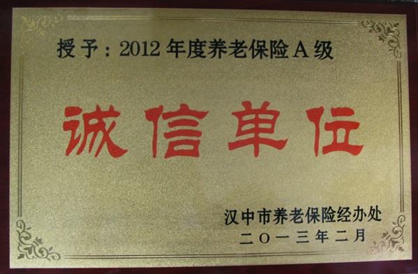 我集团所属汉中市建筑工程总公司被汉中市养老保险经办处授予“2012年度养老保险A级诚信单位”。6月21日授牌仪式在汉中金江大酒店举行。