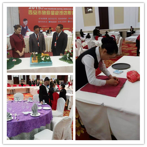 10月23日,西安市旅游星级饭店服务技能大赛在西安长庆宾馆隆重举行。本次大赛是西安市旅游局贯彻落实国家“一带一路”经济建设美好愿景,打造西安作为新丝路起点的良好旅游城市形象,提升西安市星级饭店整体服务水平,培育优秀旅游技能人才,促进旅游服务行业又好又快协调发展的一项重要活动。止园饭店店选派的优秀参赛选手参加了中式铺床、宴会设计、宴会摆台及前厅服务四个项目的比赛,并取得优异成绩。