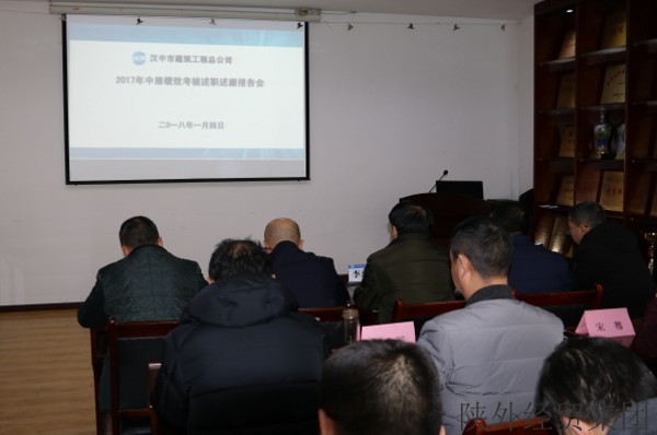 2018年1月4日下午,由汉建总公司纪委组织牵头在公司会议室召开2017年度部门绩效考核考评会,会议按照考评计划对各职能部门负责人进行2017年度绩效考核考评工作,考核依据:《2017年度部门目标责任书》、《2017年度党风廉政建设目标责任书》和公司《中层干部(德、能、勤、绩、廉)考核办法》;执行汉建总司纪发(2015)04号《汉中市建筑工程总公司每年度管理者效能监察和绩效考核办法》。公司领导、机关员工59人参加了考评会议。