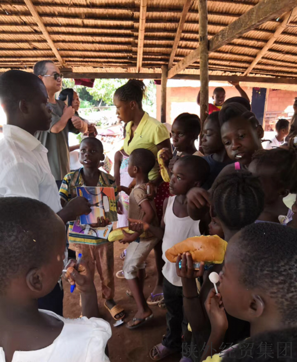 示范中心项目地处热带雨林腹地,当地居民普遍贫困,儿童常常因贫困失去受教育机会。在陕海投公司的大力支持下,全体援外专家和项目工作人员积极参与本次活动,大家纷纷捐钱捐物,向项目驻地的学校送去了图书、本子、笔等学习用品和生活物资,让他们感受这跨越重洋的爱与温暖。