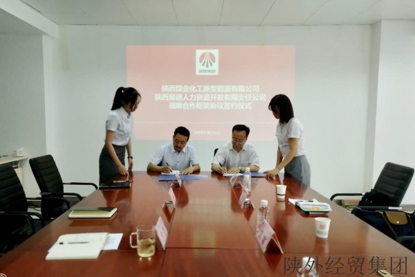 2018年6月1日上午,陕西易通人力资源开发有限责任公司(以下简称“易通人力”)与陕西煤业化工新型能源有限公司(以下简称“陕煤新能源”)战略合作框架协议签约仪式在神光双子大厦10楼会议室举行。会议由陕煤新型能源人力资源部部长李彦主持。陕煤新型能源董事长方刚,易通人力党委书记、董事长艾斌,以及双方多个部门的相关负责人共同出席。