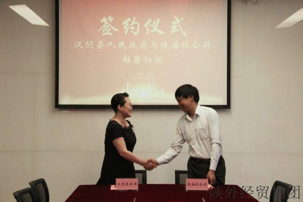 2018年6月8日,陕海投公司与汉阴县人民政府签署支持汉阴县外向型经济发展框架协议。陕海投公司党委书记、董事长丁永忠、汉阴县委副书记、县长刘飞霞分别代表陕海投公司与汉阴县进行签约。本次签约仪式由陕海投公司副总经理刘军主持,汉阴县政府办副主任杨景勇、汉阴县经贸局局长喻胜全、安康市龙飞魔芋食品有限公司董事长王大龙、陕海投公司综合行政部部长常姜、对外联络部部长黎璐、投融资部临时负责人韩宇聪以及金融市场部临时负责人昝菲出席了此次签约仪式。