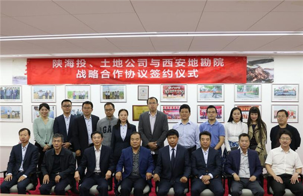 2018年9月28日周五上午10:00,陕西外经贸土地整理开发工程有限公司、陕西海外投资发展有限公司与西安地质矿产勘查开发院有限公司,三方战略合作签约仪式在陕西外经贸土地整理开发工程有限公司会议室隆重举行,陕西外经贸土地整理开发工程有限公司及陕西海外投资发展有限公司董事长丁永忠、土地公司总经理唐李、陕海投公司总经理刘军、西安地质矿产勘查开发院院长王战社、副院长邹文良及三方相关部门负责人共30人共同见证并进行了本次签约仪式。