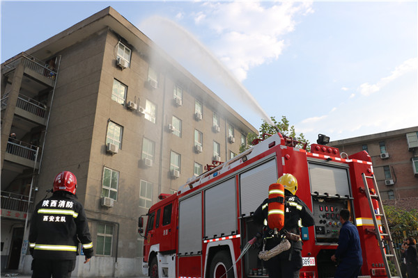 上午9时,演练正式开始。演练模拟公司东楼宿舍出现火情,火势迅速蔓延。公司立即启动消防应急预案,按照程序进行报警、扑救、疏散,第一时间控制火势。在人员紧急疏散后,消防车迅速赶到现场,启动消防水枪进行灭火。整个消防演练过程紧张而有序的开展,较为顺利。